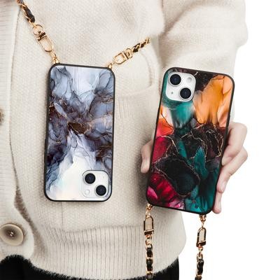 رخام رخام كروس كروس سوار قلادة سوار جلدي العلبة للهاتف لجهاز iPhone 14