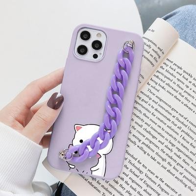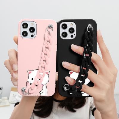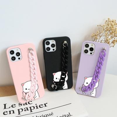 حالات هاتف Cat Cat مع سلسلة لـ iPhone 12 11 Pro 8 7 6 Plus 5 SE 2020 X XR XS Max