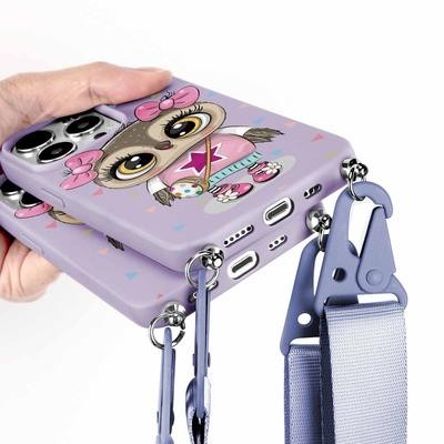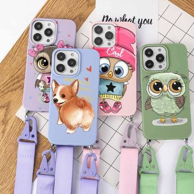 Cartoon Owl Cute Dog Strap Phone Case with Cord for iPhone 13 12 11 Pro Max x