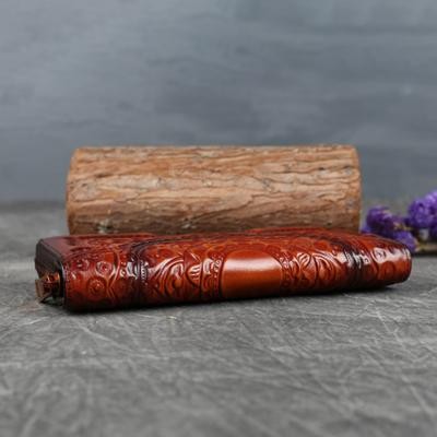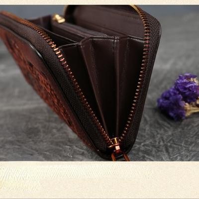 رجعية محفظة محفظة حقيبة طويلة الطبيعة بقرة الجلد المصنوعة يدويا محفظة الأزهار المنقوش