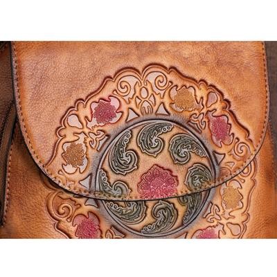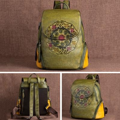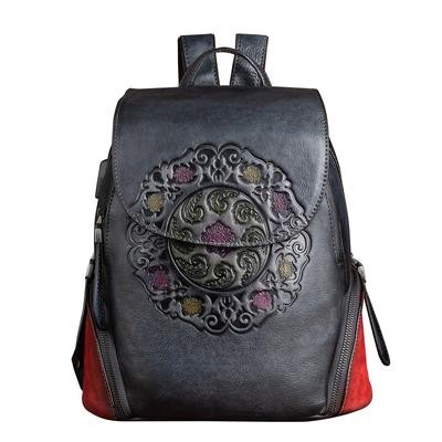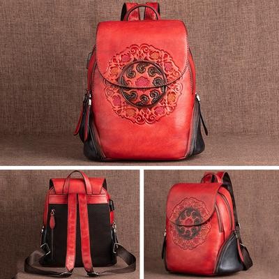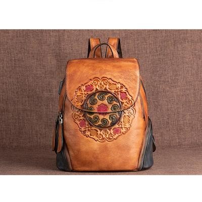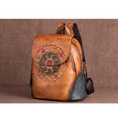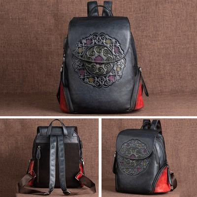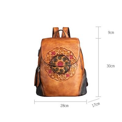 титульная страница > الحقائب وحقائب السفر > رجعية رجعية حقيبة ظهر جلدية حقيبة نساء الشتاء مصنوعة يدويًا حقيبة الأزهار الكبيرة