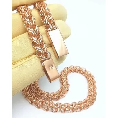 رامسي سلسلة ذهبية مصنوعة من 14 قيراطًا من الذهب الأحمر ، الوزن الكامل ، قفل الصندوق ، الطول 60 سم ، الوزن 6