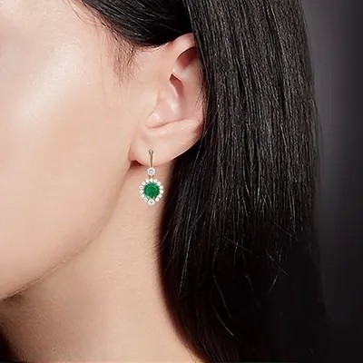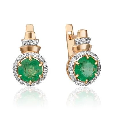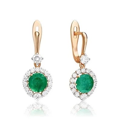 титульная страница > مجوهرات > أقراط بلاتينا مع قفل إنجليزي مصنوع من 585 من الذهب الأحمر مع الزمرد والماس