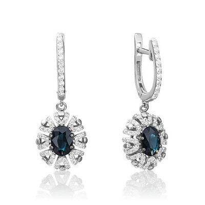 титульная страница > مجوهرات > أقراط بلاتينا مع قفل إنجليزي مصنوع من 585 من الذهب الأبيض مع الياقوت والماس