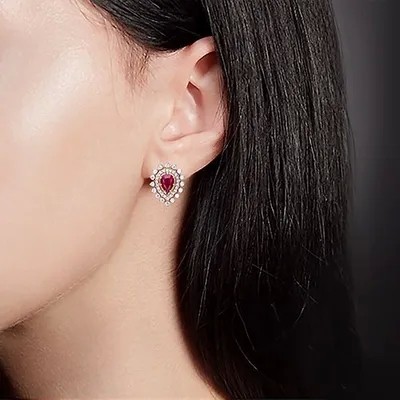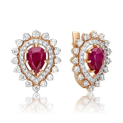 титульная страница > مجوهرات > أقراط بلاتينا مع قفل اللغة الإنجليزية من 585 من الذهب الأحمر مع الياقوت والماس